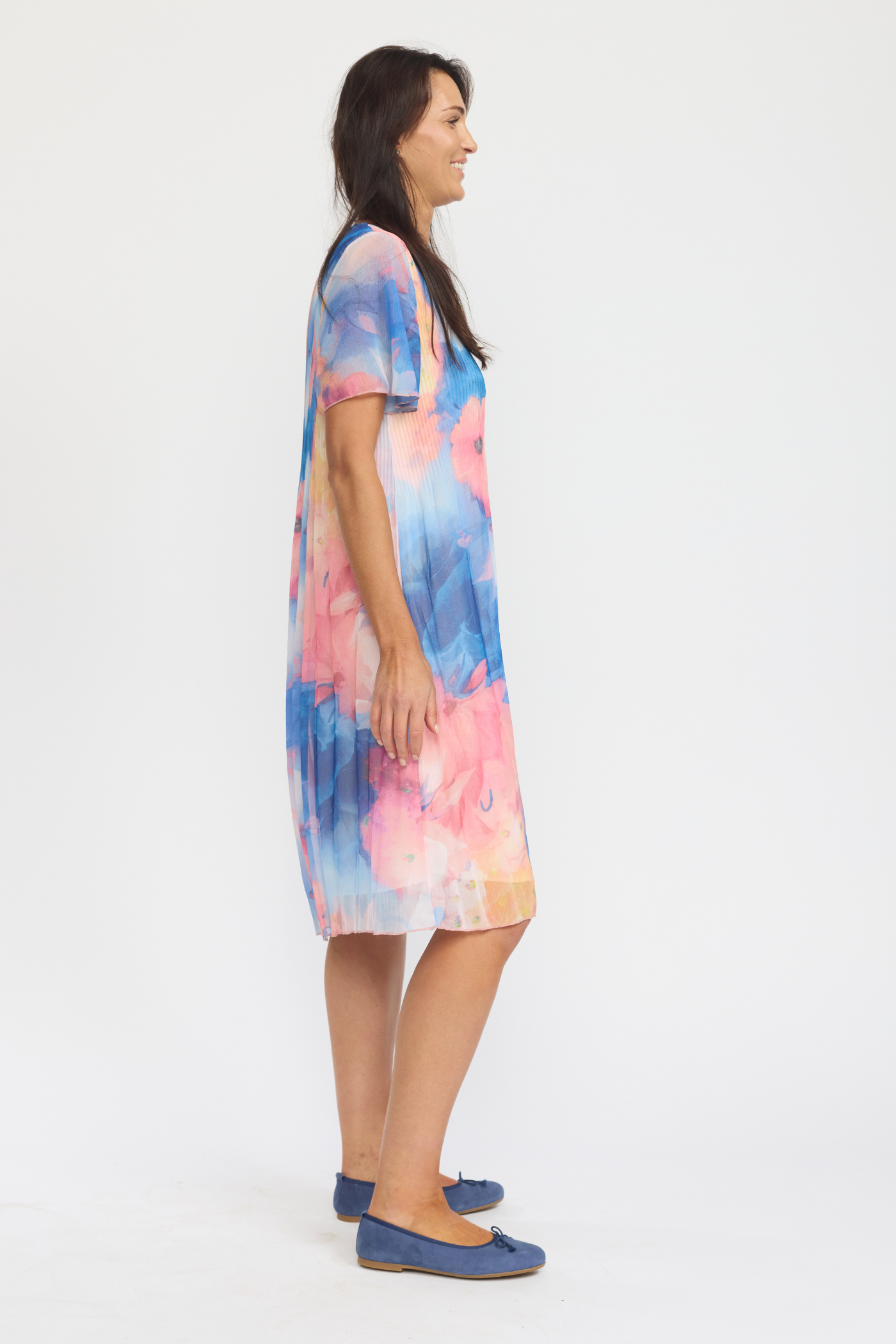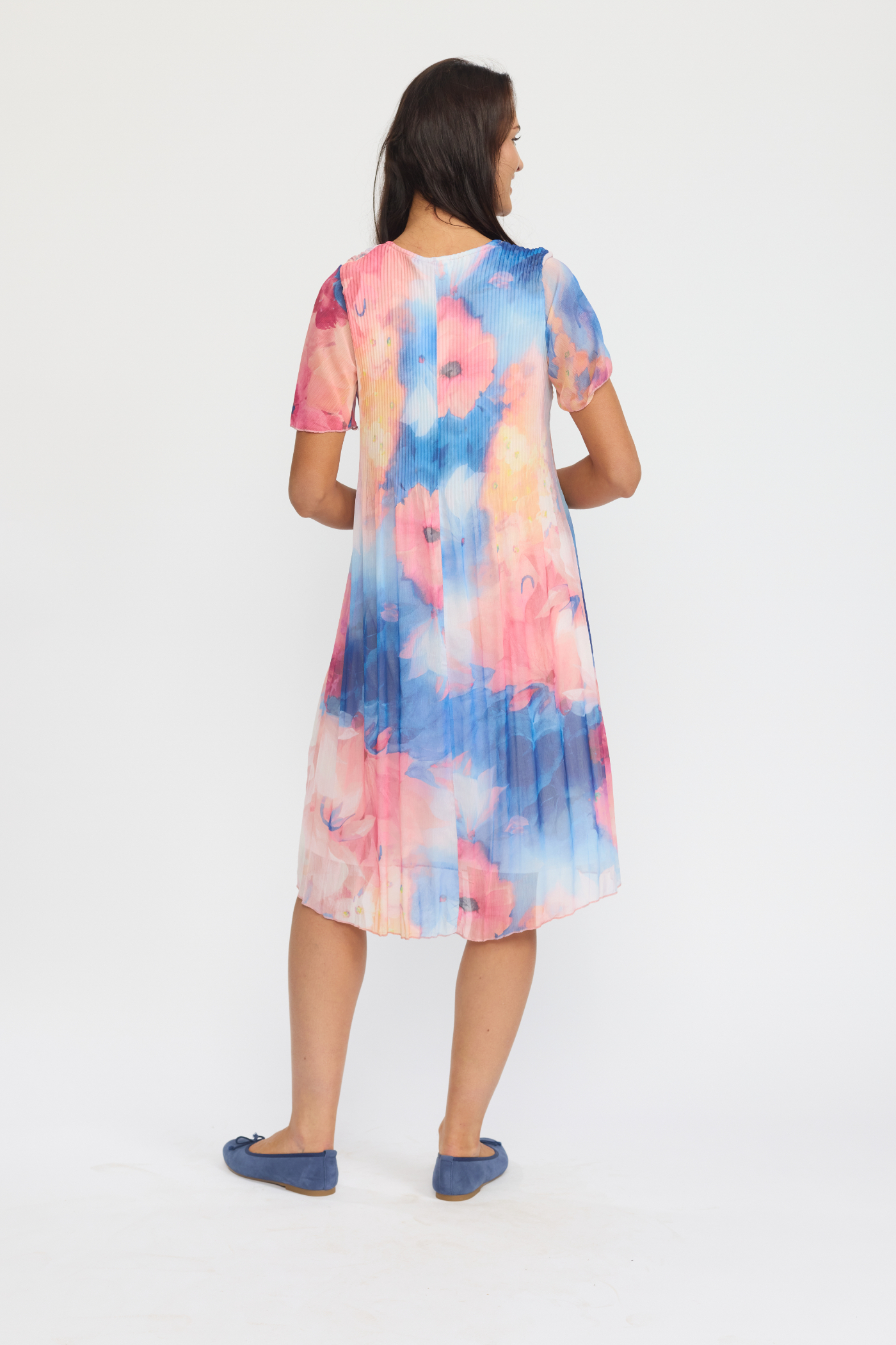 Plissé kjole fra 2-Biz med korte ærmer og underkjole. Den er utrolig behagelig at have på og luftig, den er perfekt til den årstid vi går i møde.