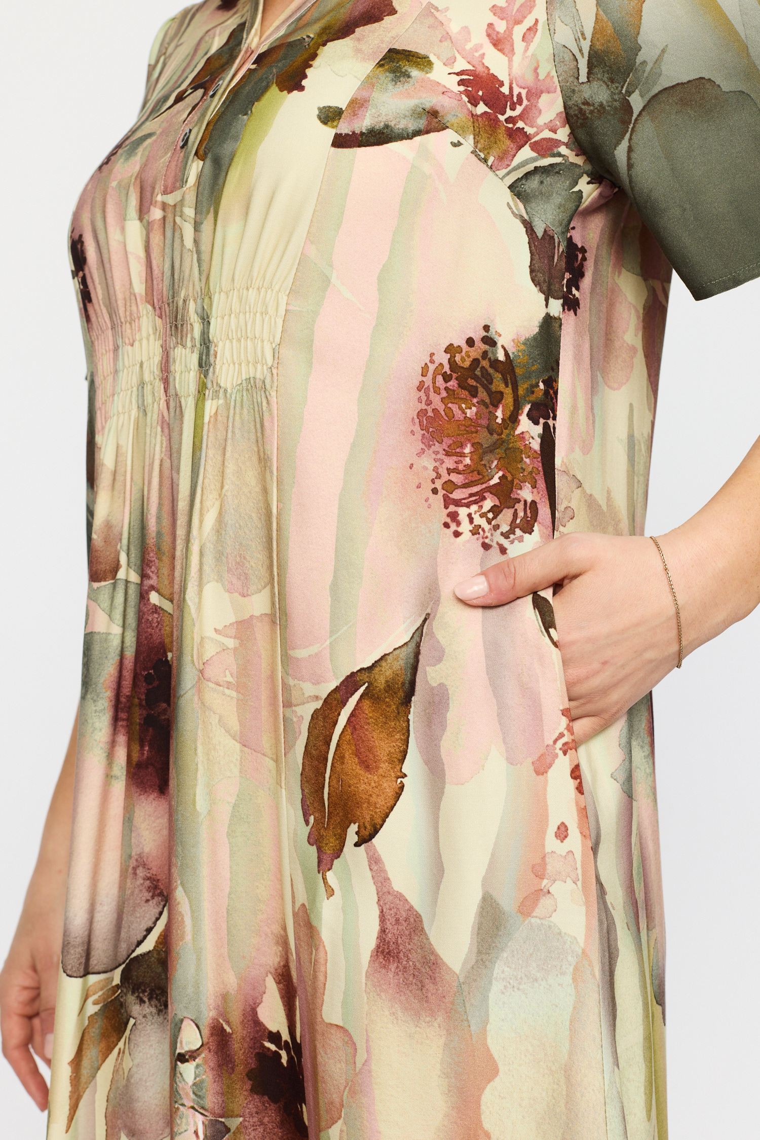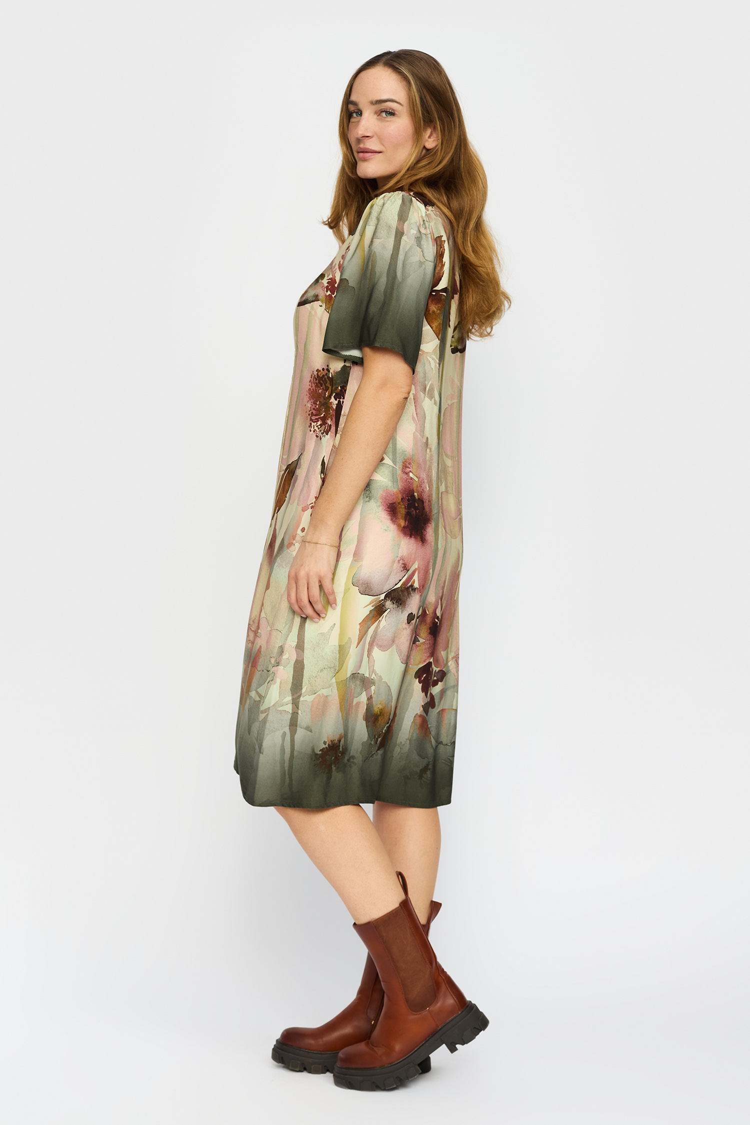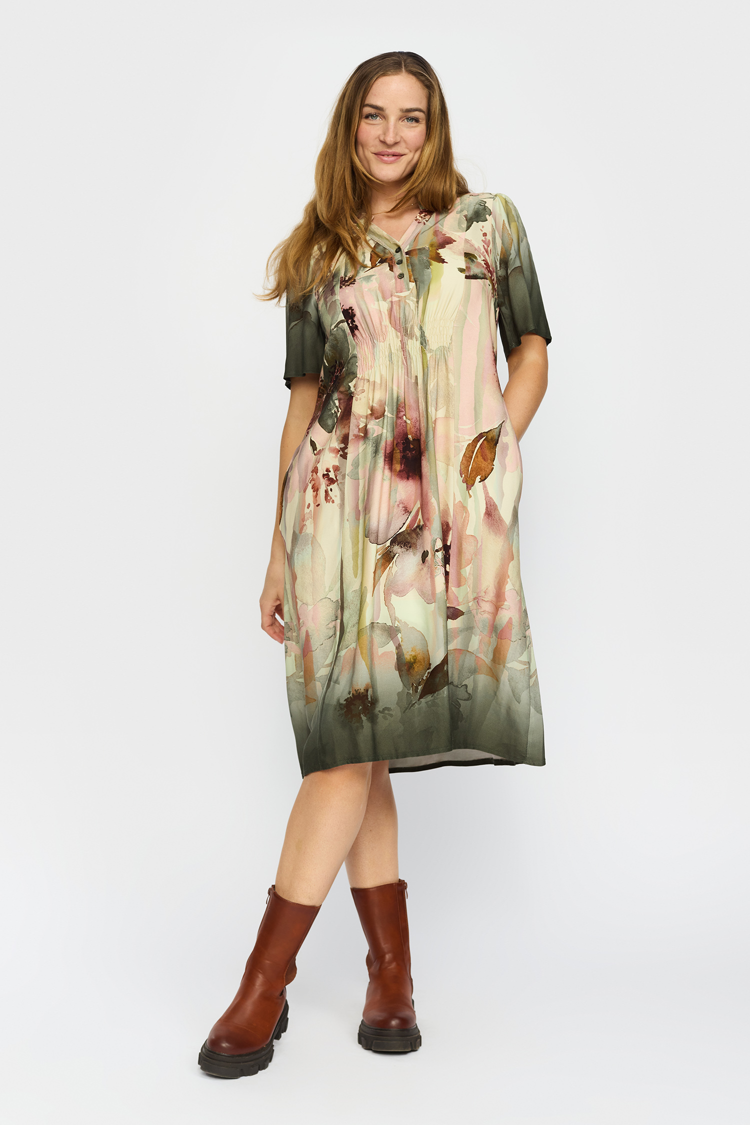 Let og luftig knælang kjole med korte ærmer og knappedetaljer.