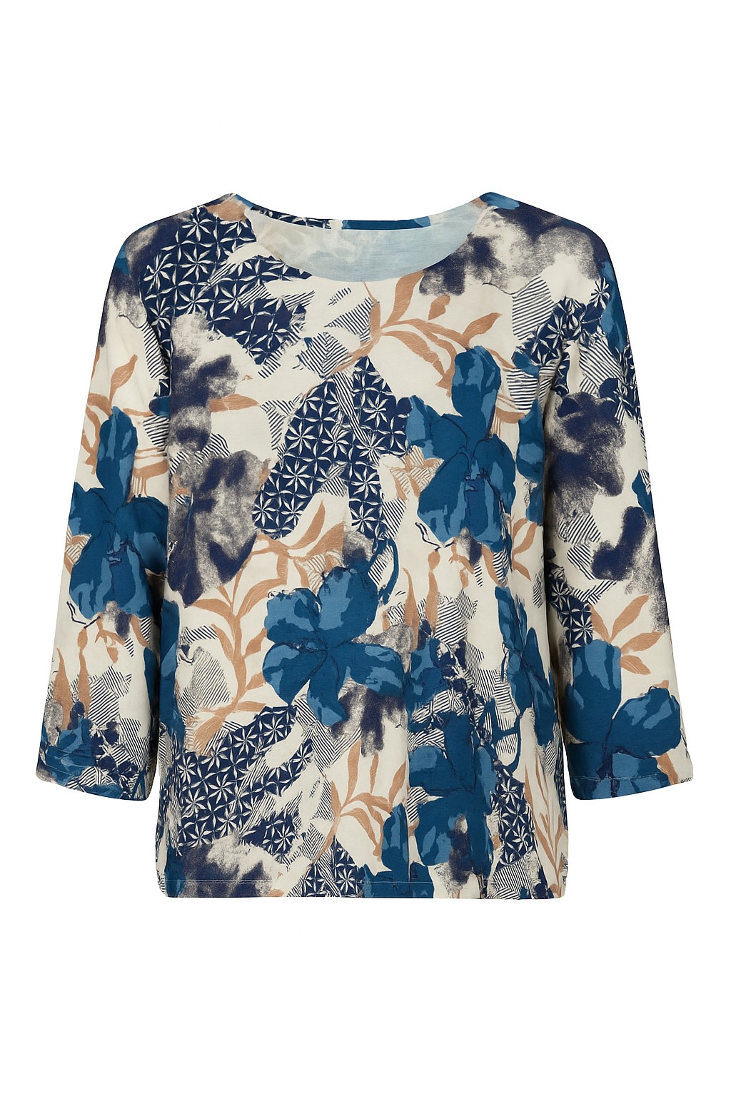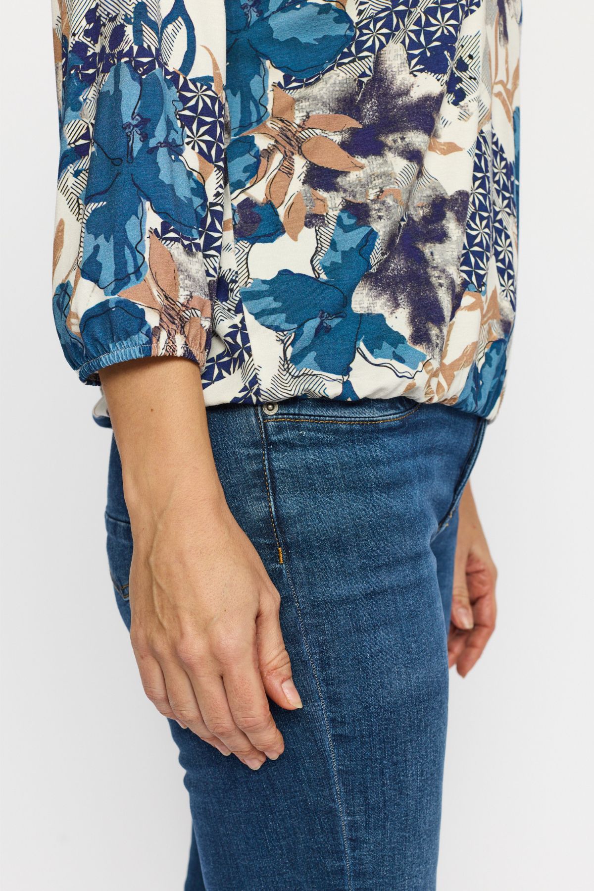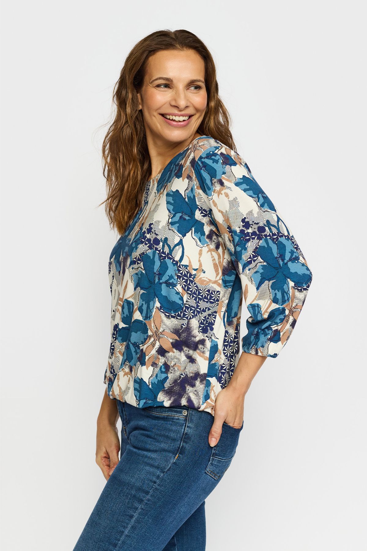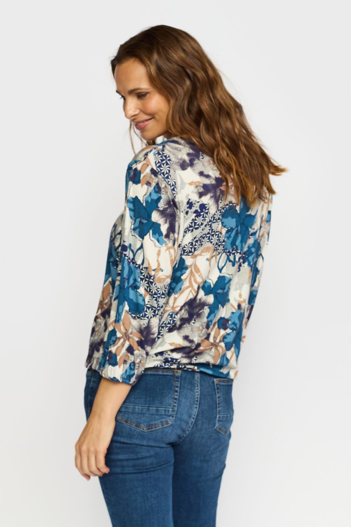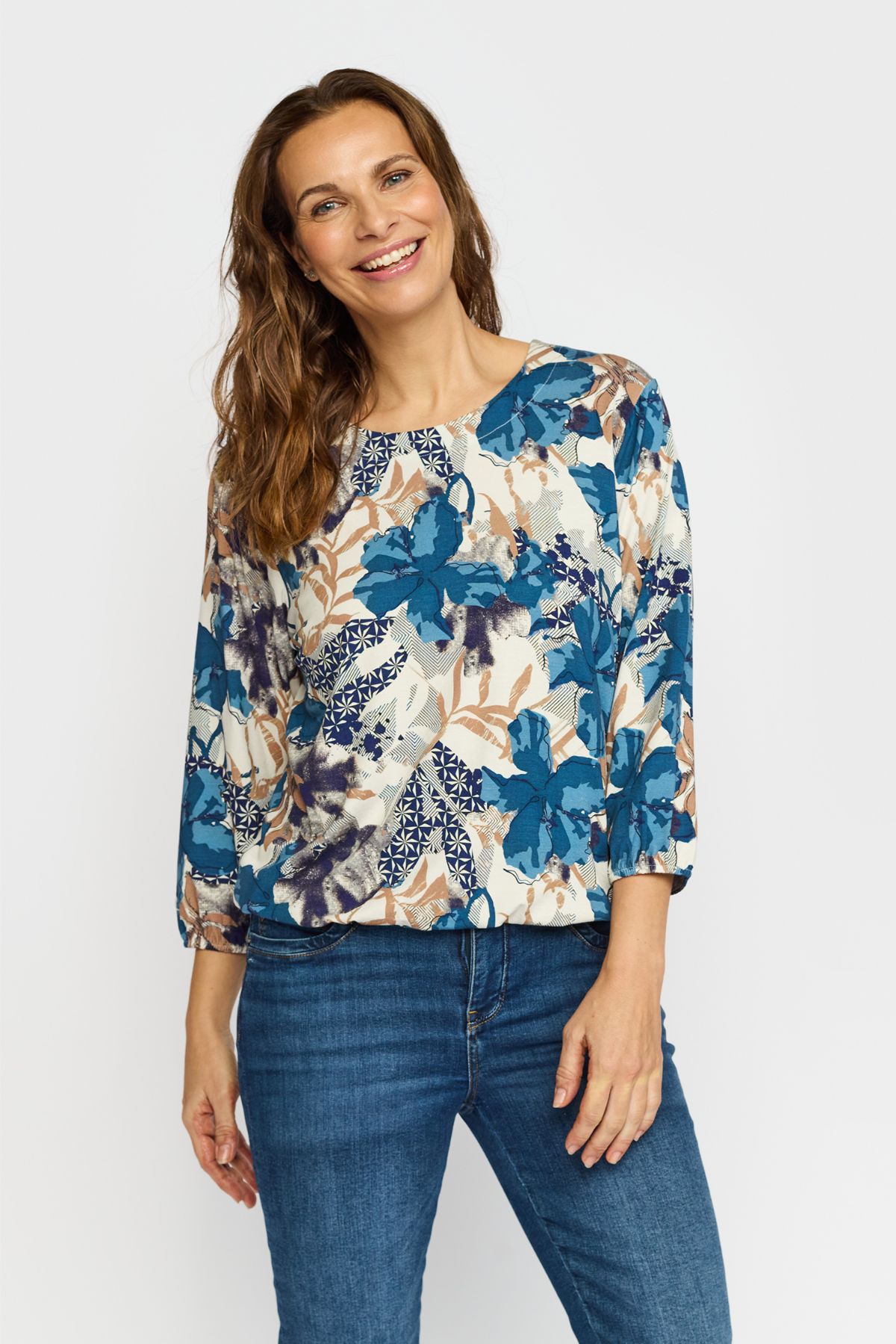 Lækker viskose bluse fra 2-Biz i modellen Tandy. Blusen har rund hals, trekvartærmer og elastik forneden så man kan style blusen som man ønsker.