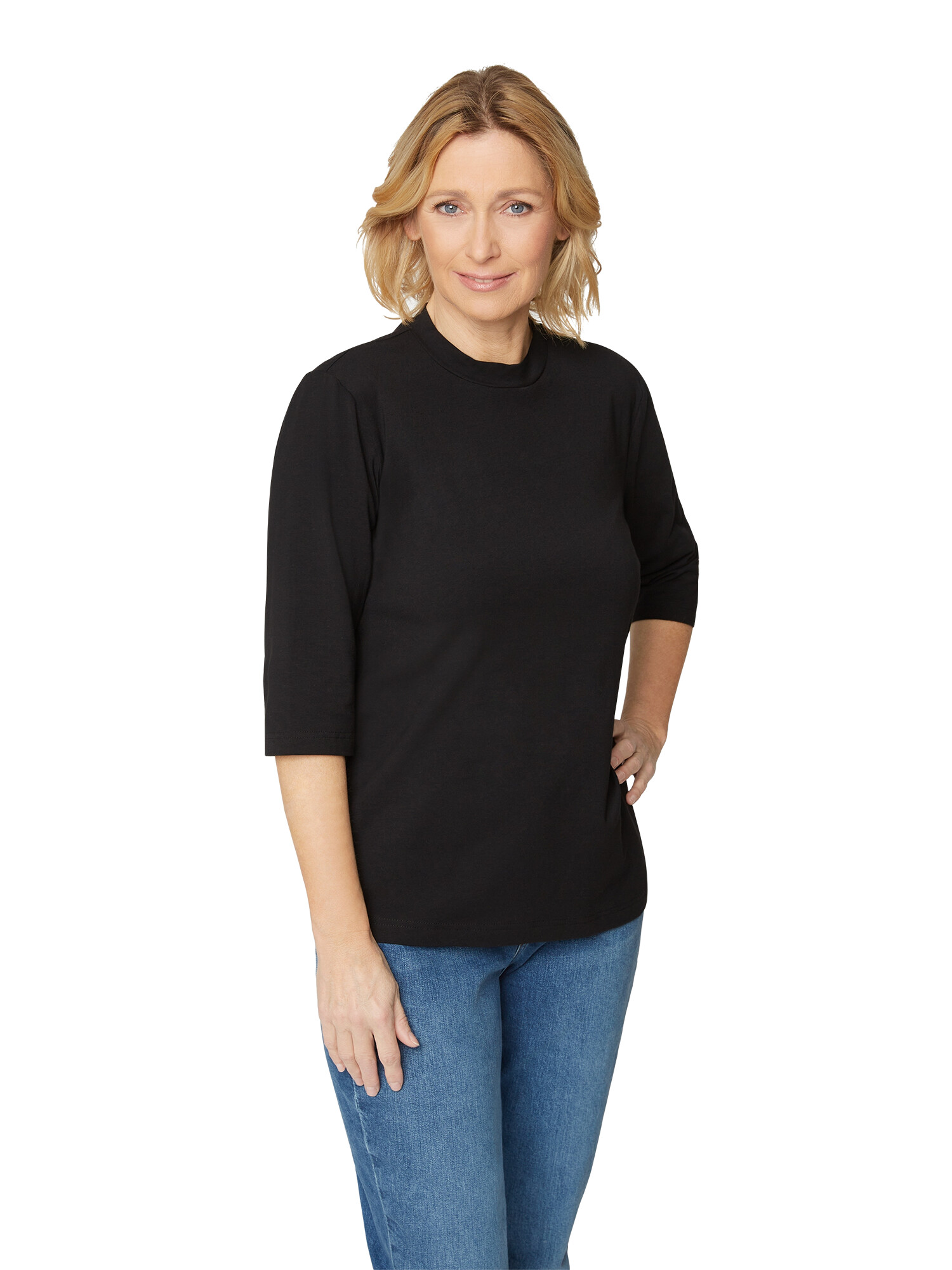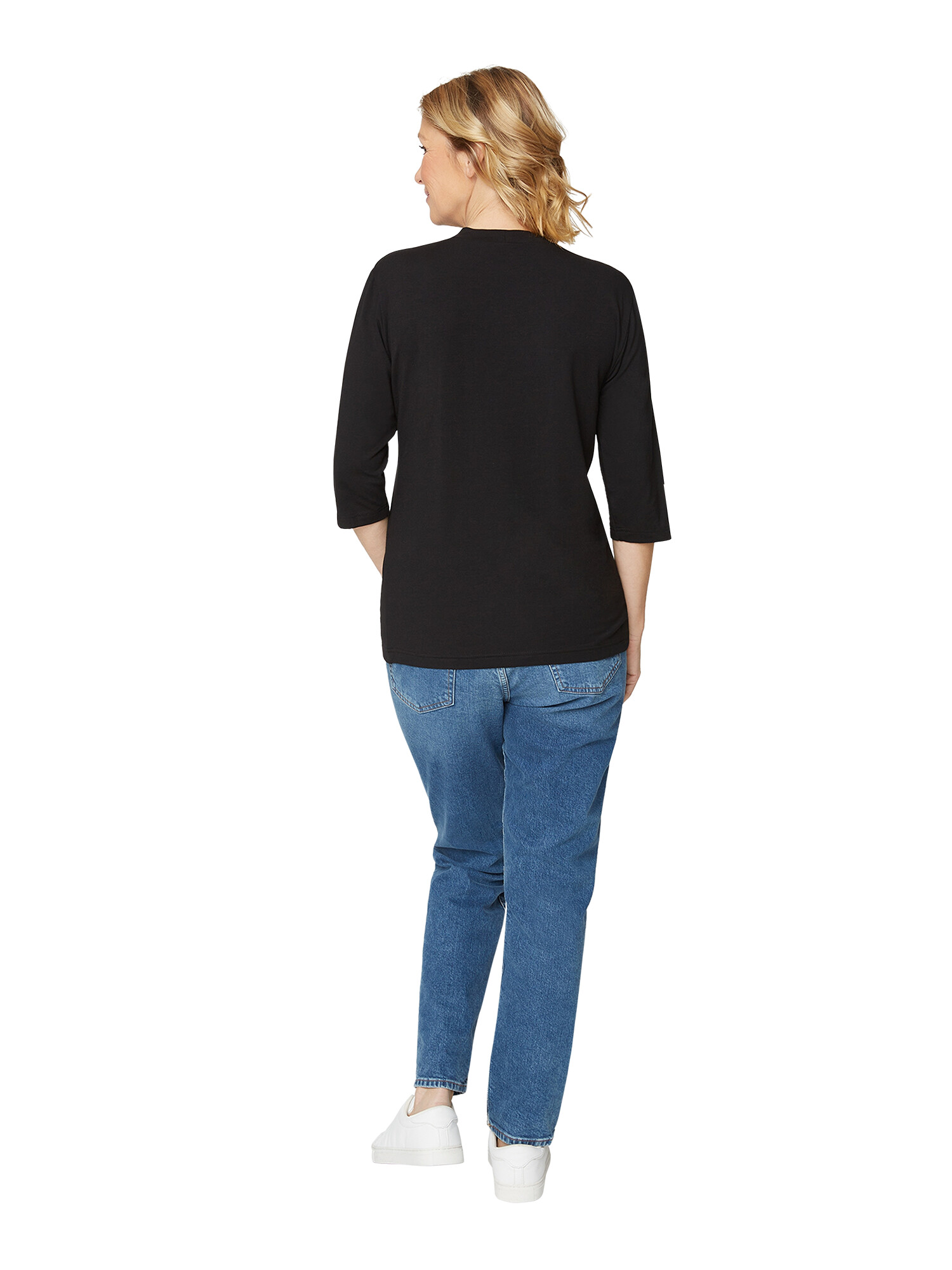 Fin basis bluse fra Brandtex. Blusen har 3/4 ærme og rund hals som går lidt op.