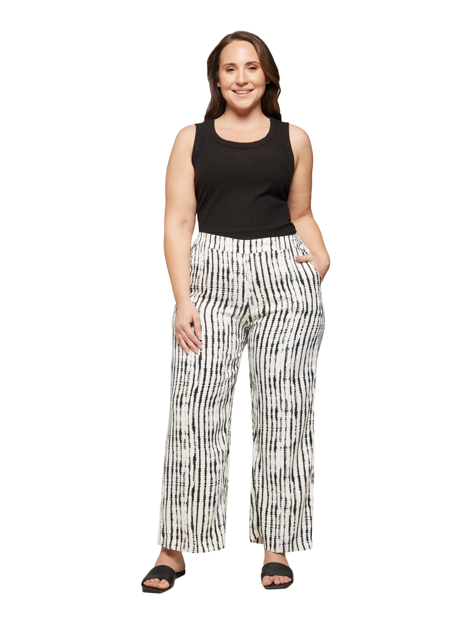 Fin stribet buks fra Ciso. Buksene har elastik i taljen, lommer og er i 7/8 dels længde.