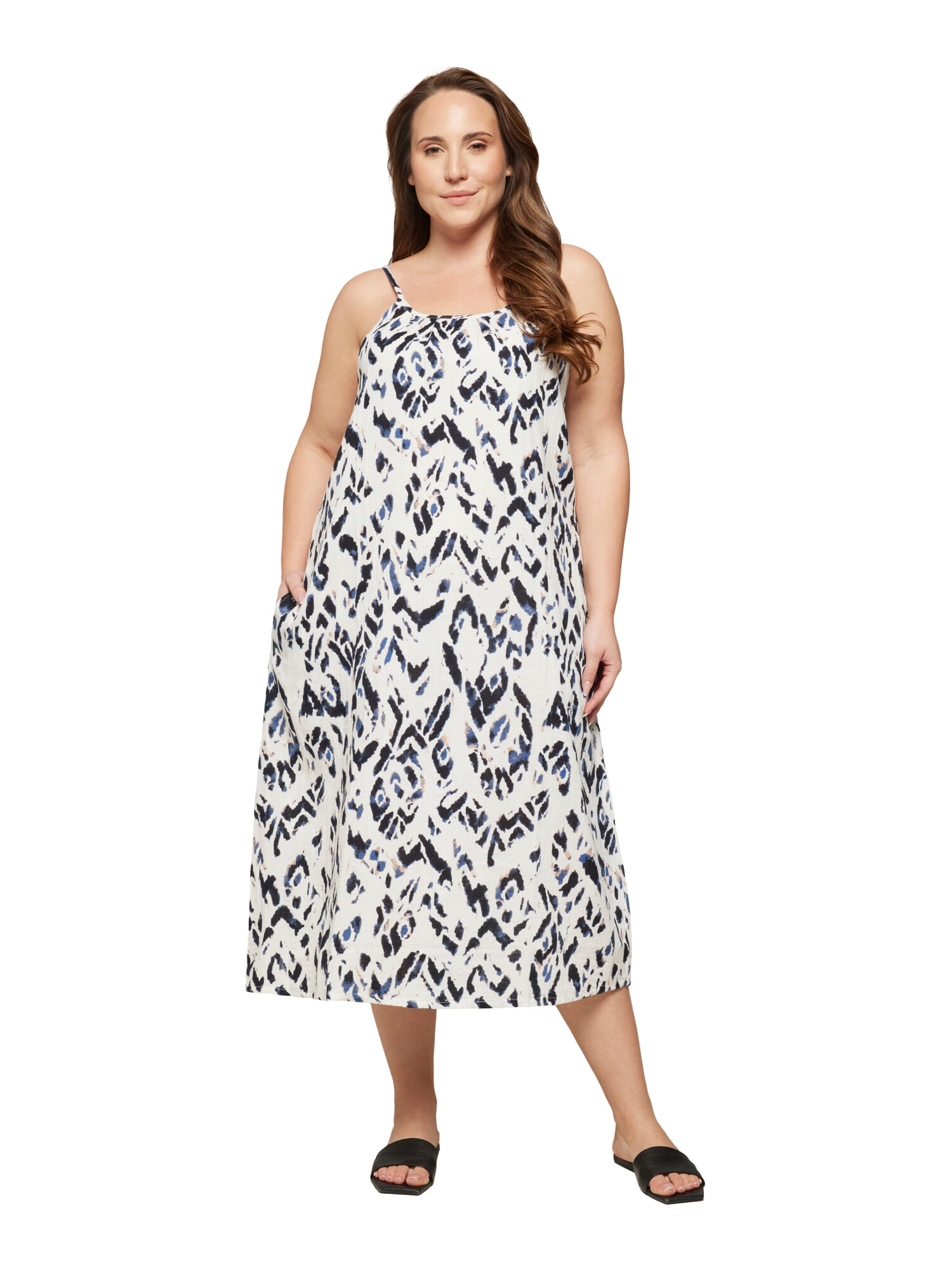 Fin stropkjole fra Ciso. Kjolen er i 100% Bomuld. Kjolen har lommer i siden, og smalle stropper.