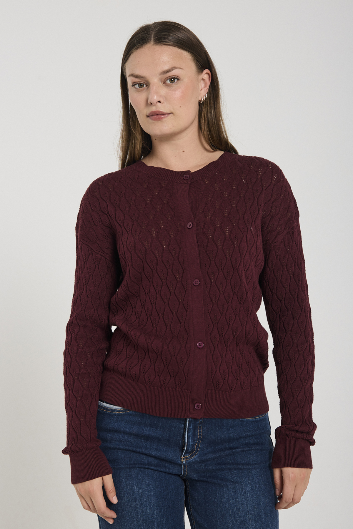 Fin strik cardigan fra FreeQuent i modellen Dodo. Cardiganen er lavet i 100% bomuld. Cardiganen har lange ærmer, rund hals og er gennemknappet. Cardiganen er lavet i et flot mønster.