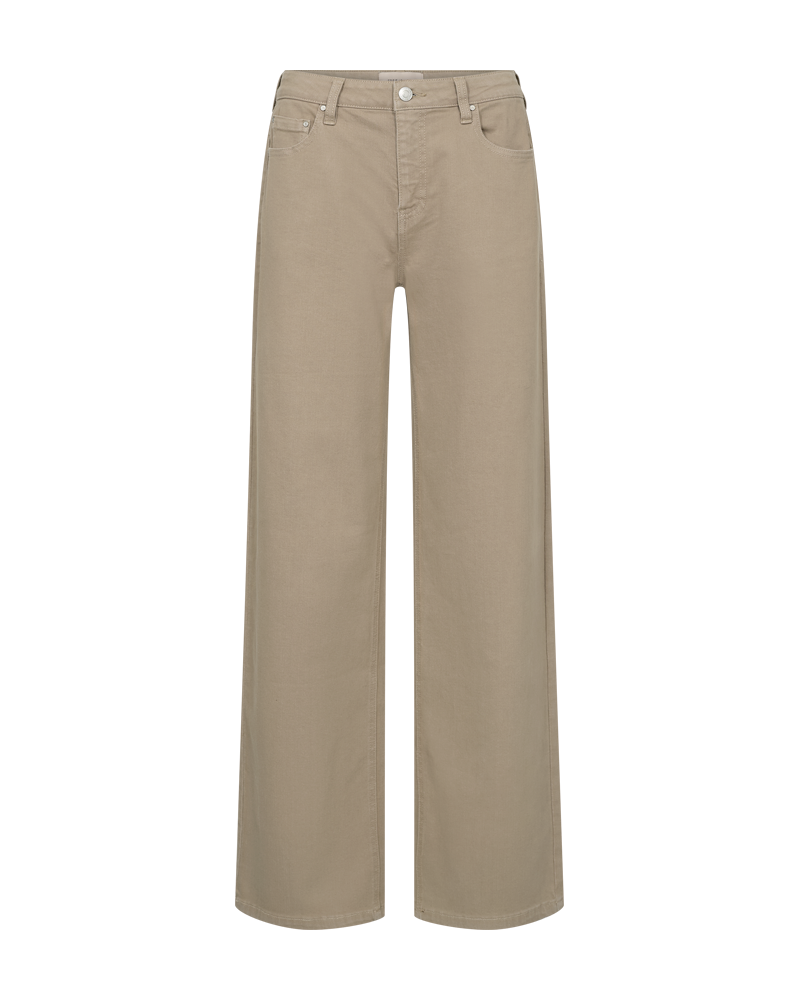 Lækre jeans fra FreeQuent i en blød kvalitet og i modellen Nanna. Bukserne er en klassisk 5 pocket model med knap- og lynlåslukning samt brede lige ben.