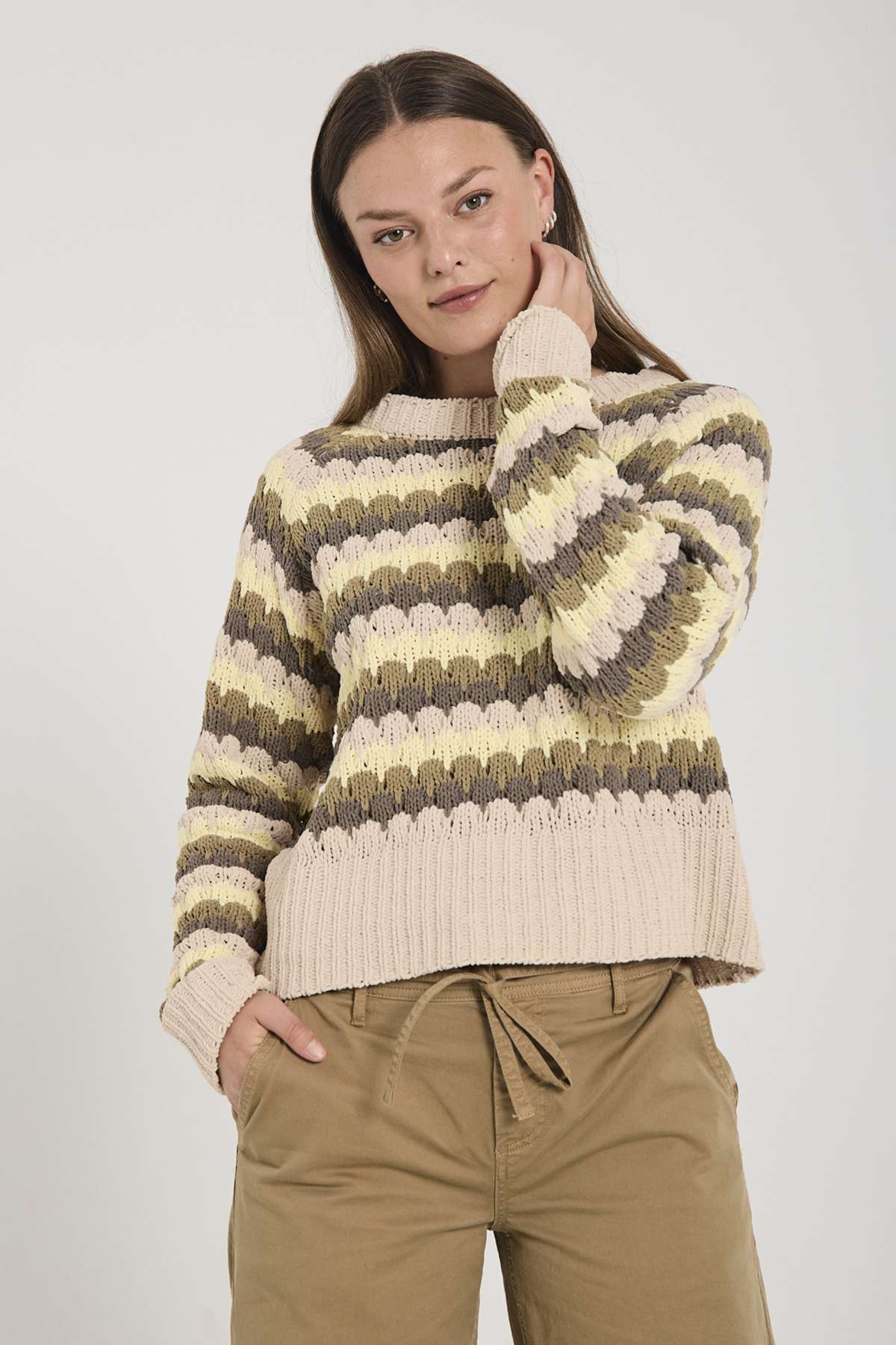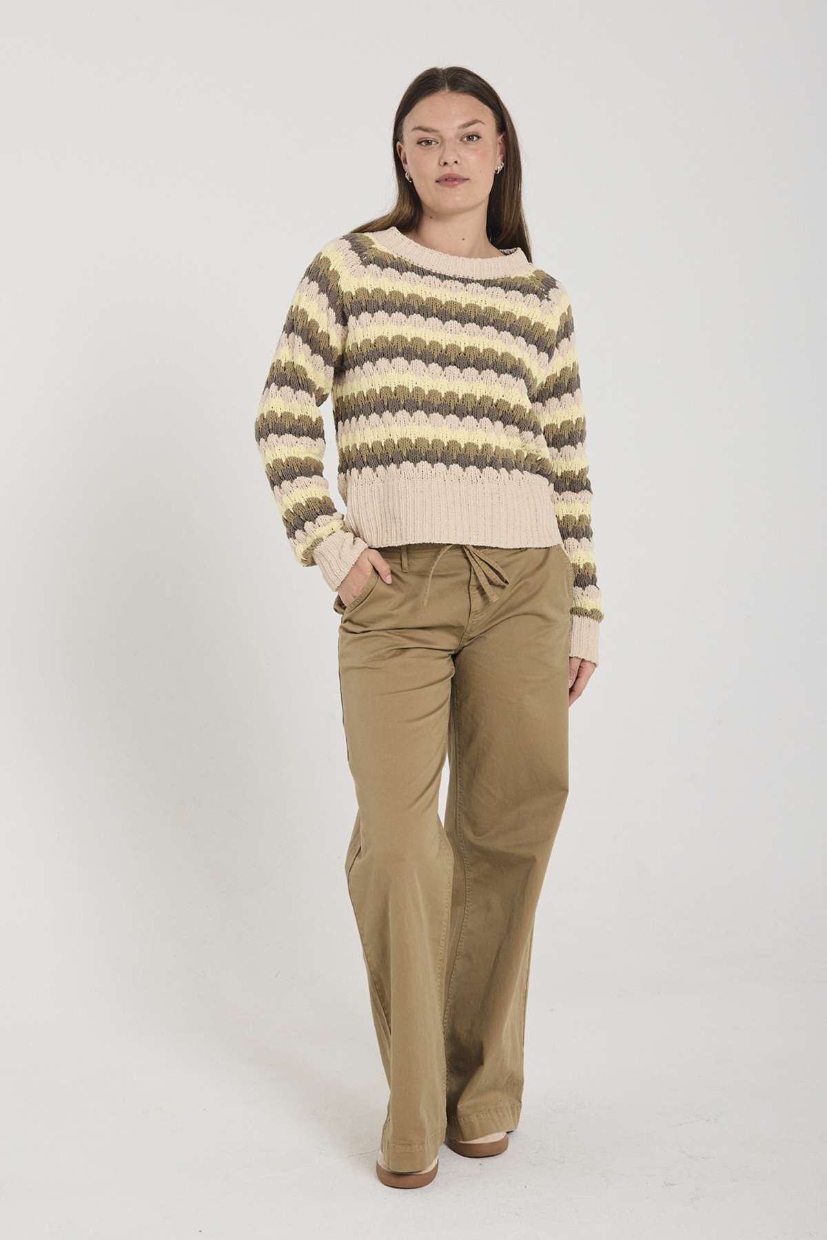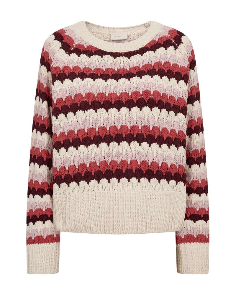 Pullover fra Freequent i den blødeste kvalitet med et moderne, stribet mønster. Pulloveren er enkel i modellen med lange ærmer, en rund halsudskæring samt en elegant, løs pasform.