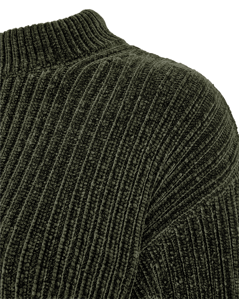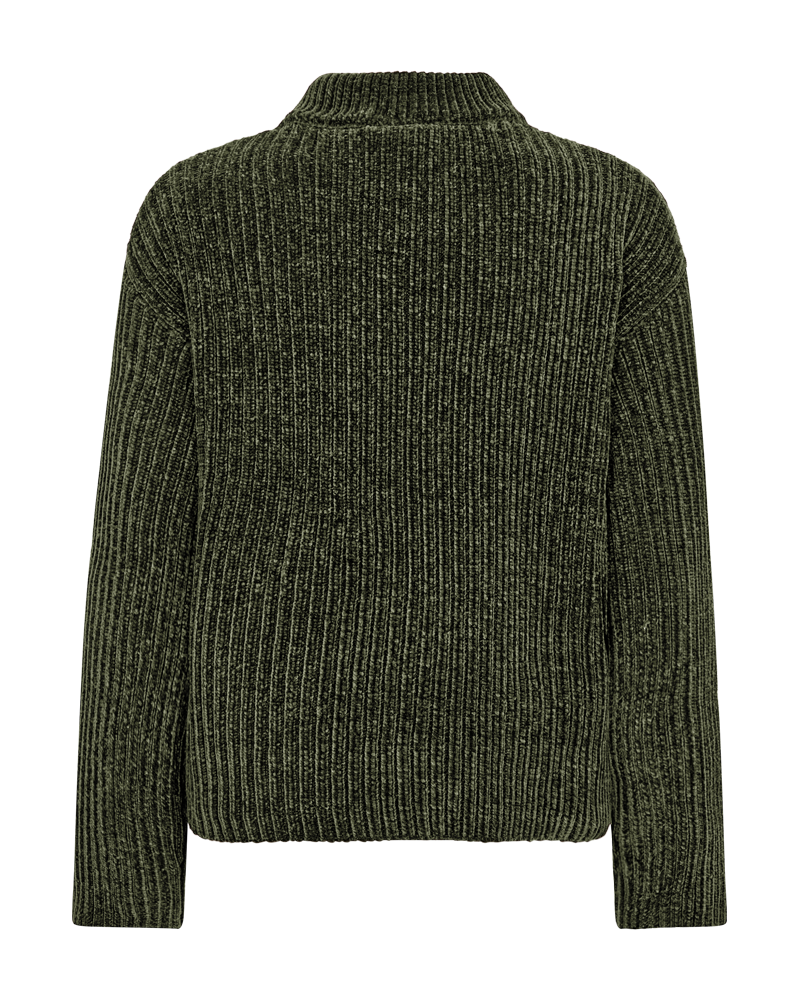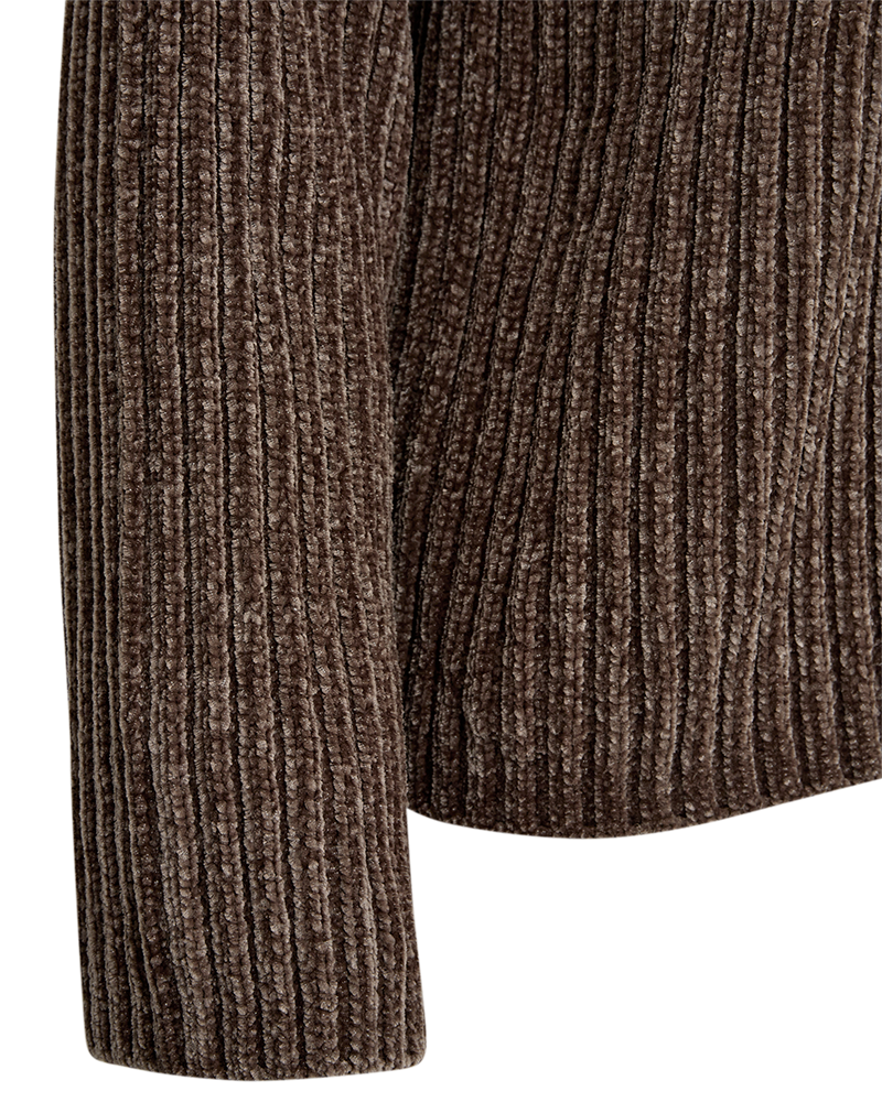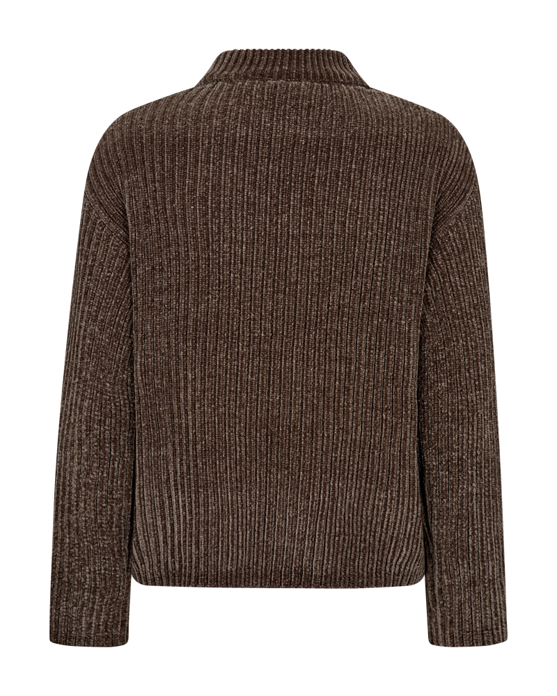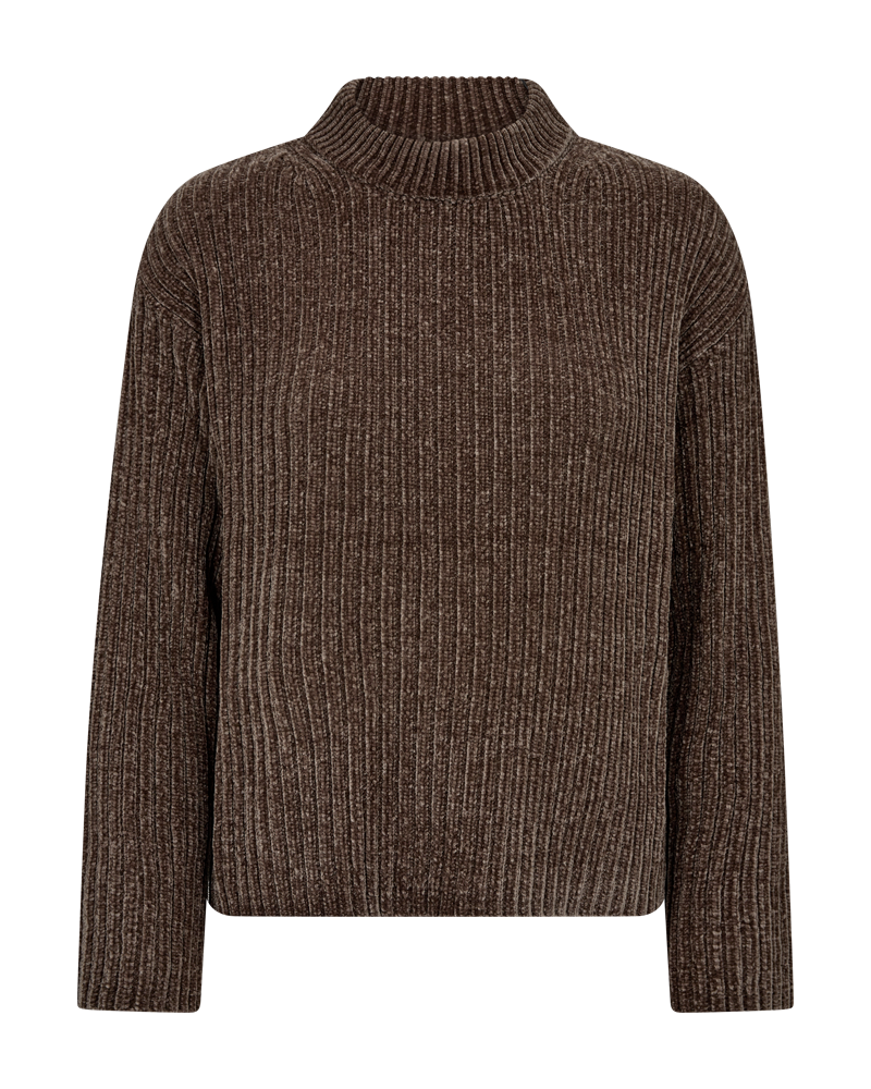 Pullover fra Freequent i en blød chenillekvalitet med en ribstrikket struktur. Pulloveren er enkel i modellen med en rund halsudskæring samt lange ærmer med drop skulder, der understreger den løse pasform.