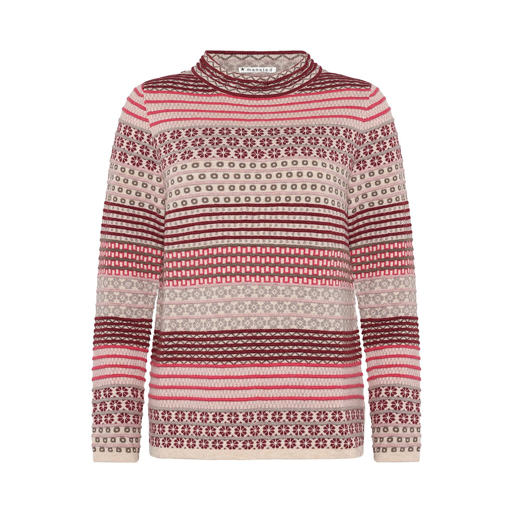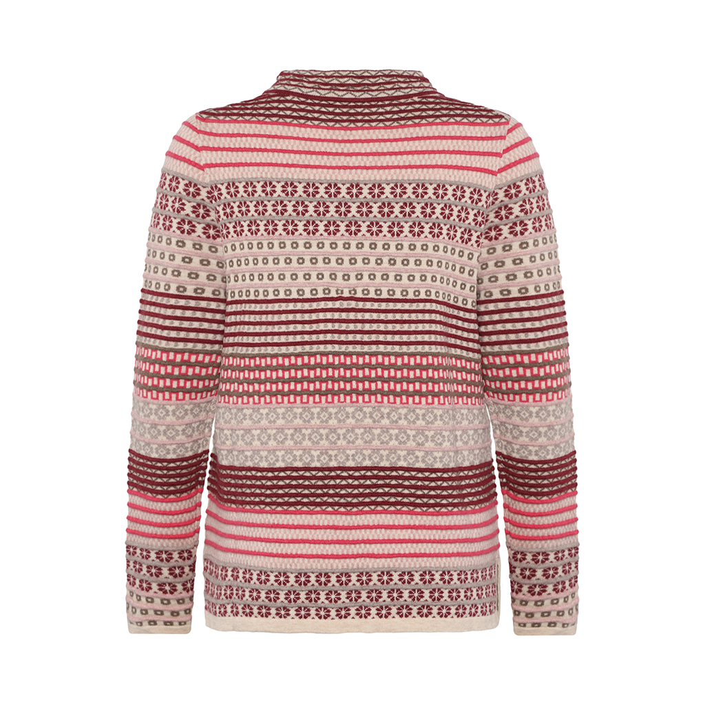 Detalje: Flerfarvet svævende jacquard med striber, pulloveren har slidser i sidesømmene