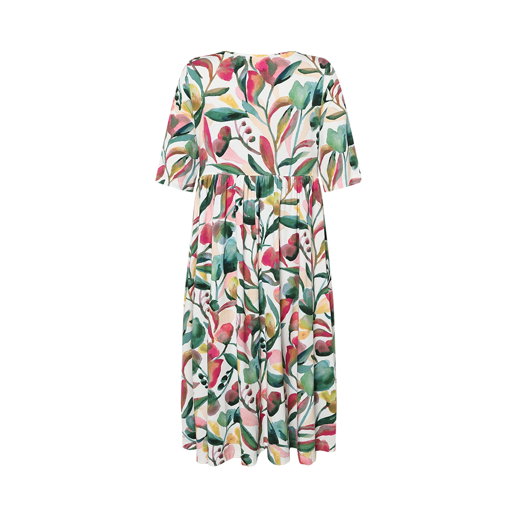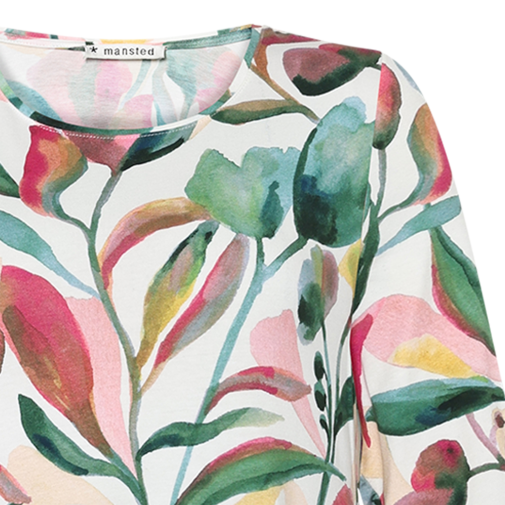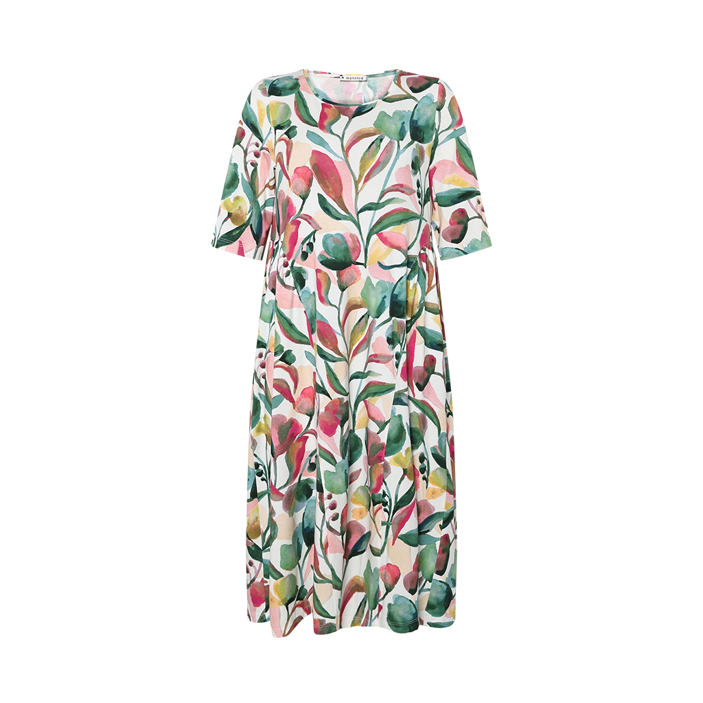 Super sød kjole fra Mansted i blomster print. Kjolen har kort ærme og rund hals.