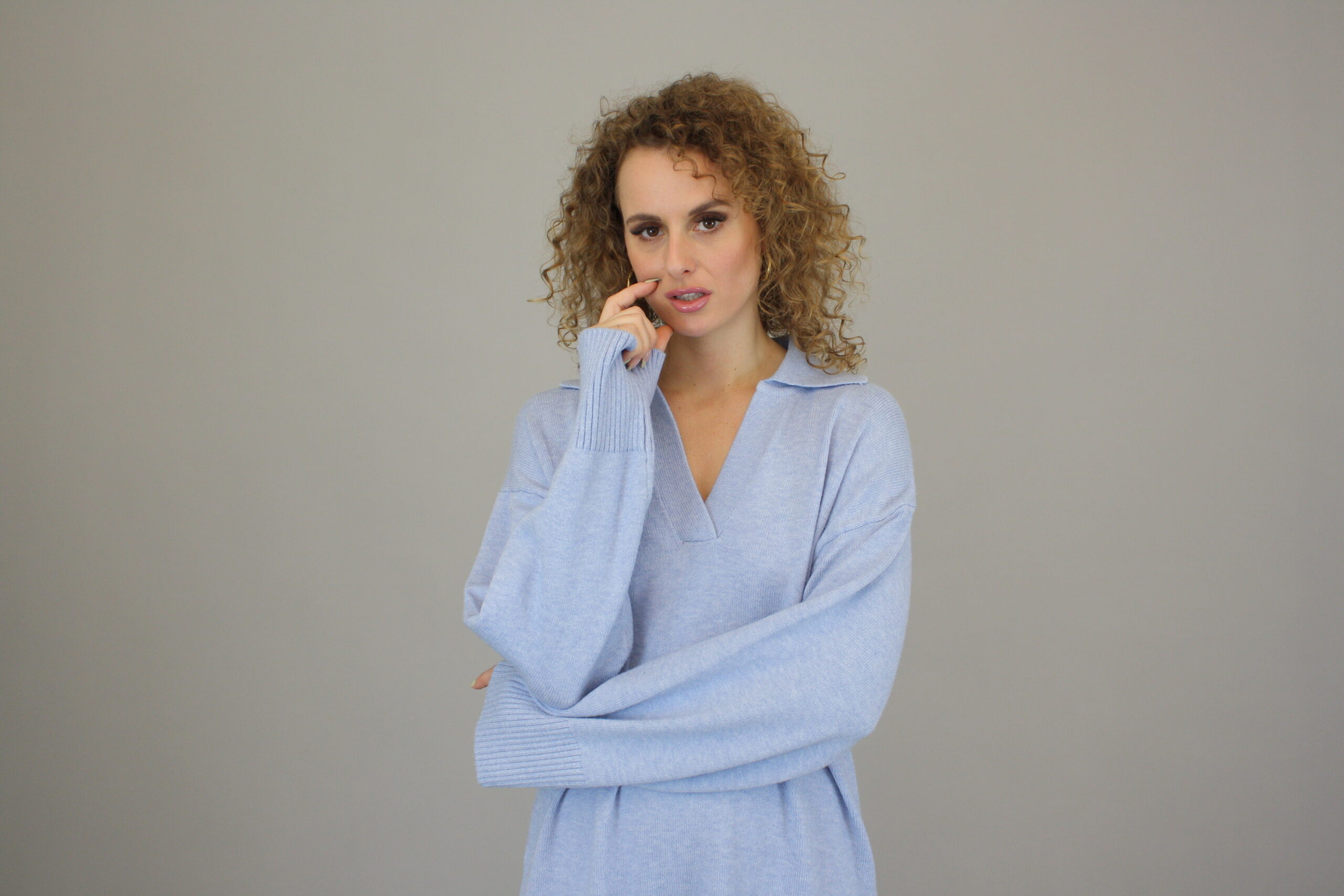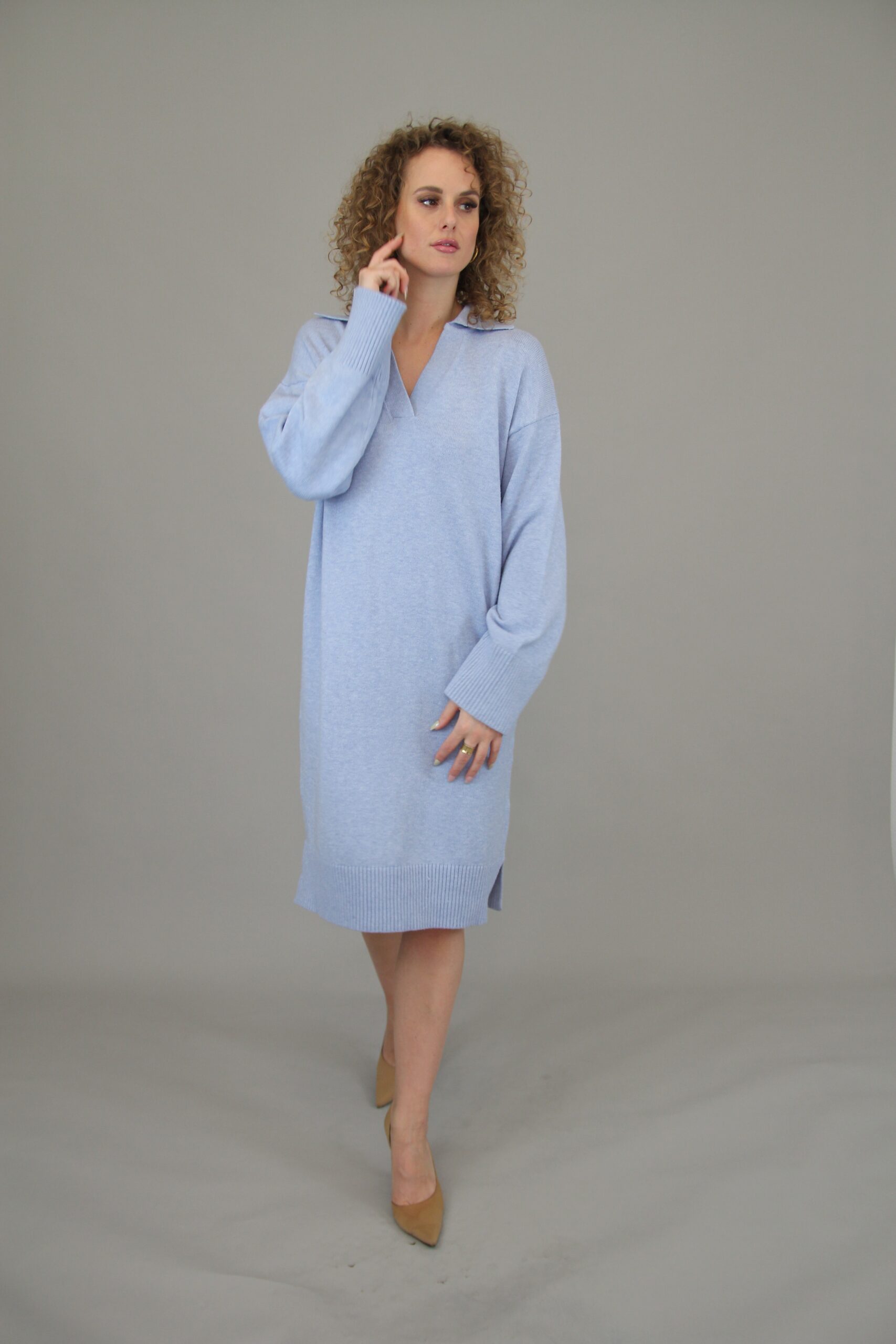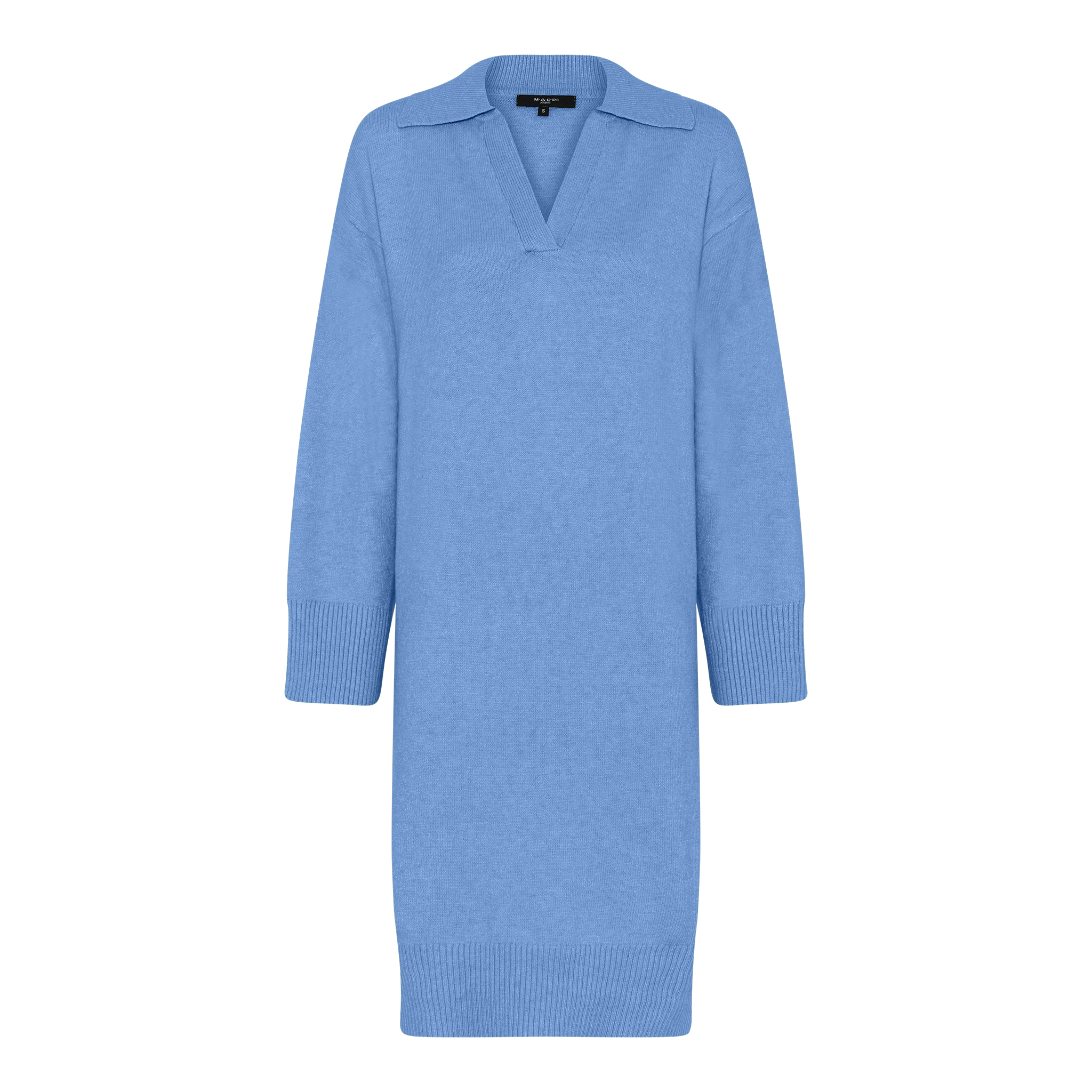 Lækker blød strikkjole fra MAPP. Kjolen har ribkant ved enden af ærmerne og forneden på kjolen, derudover er der en slids i siden. Kjolen har desuden V-hals og krave.