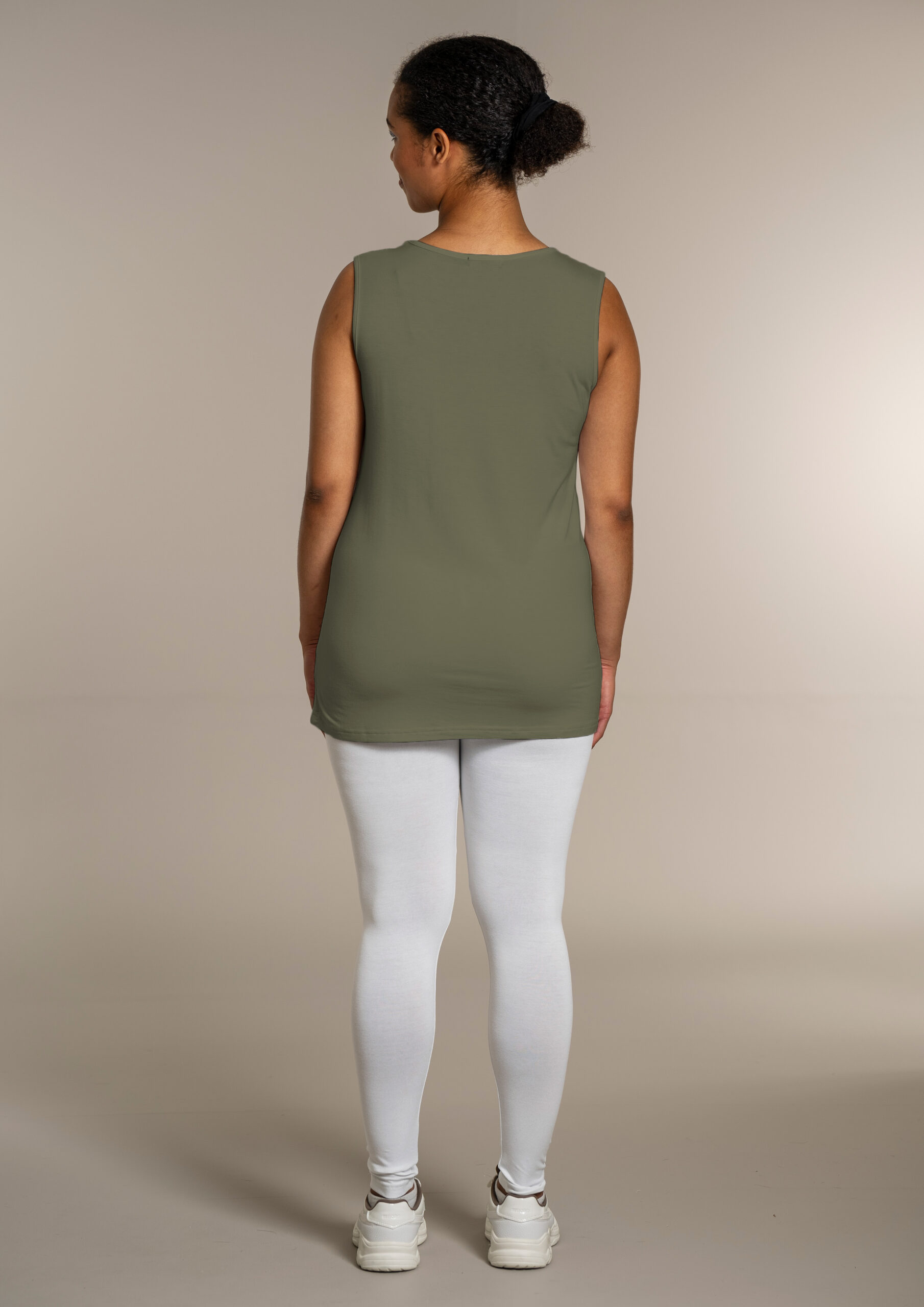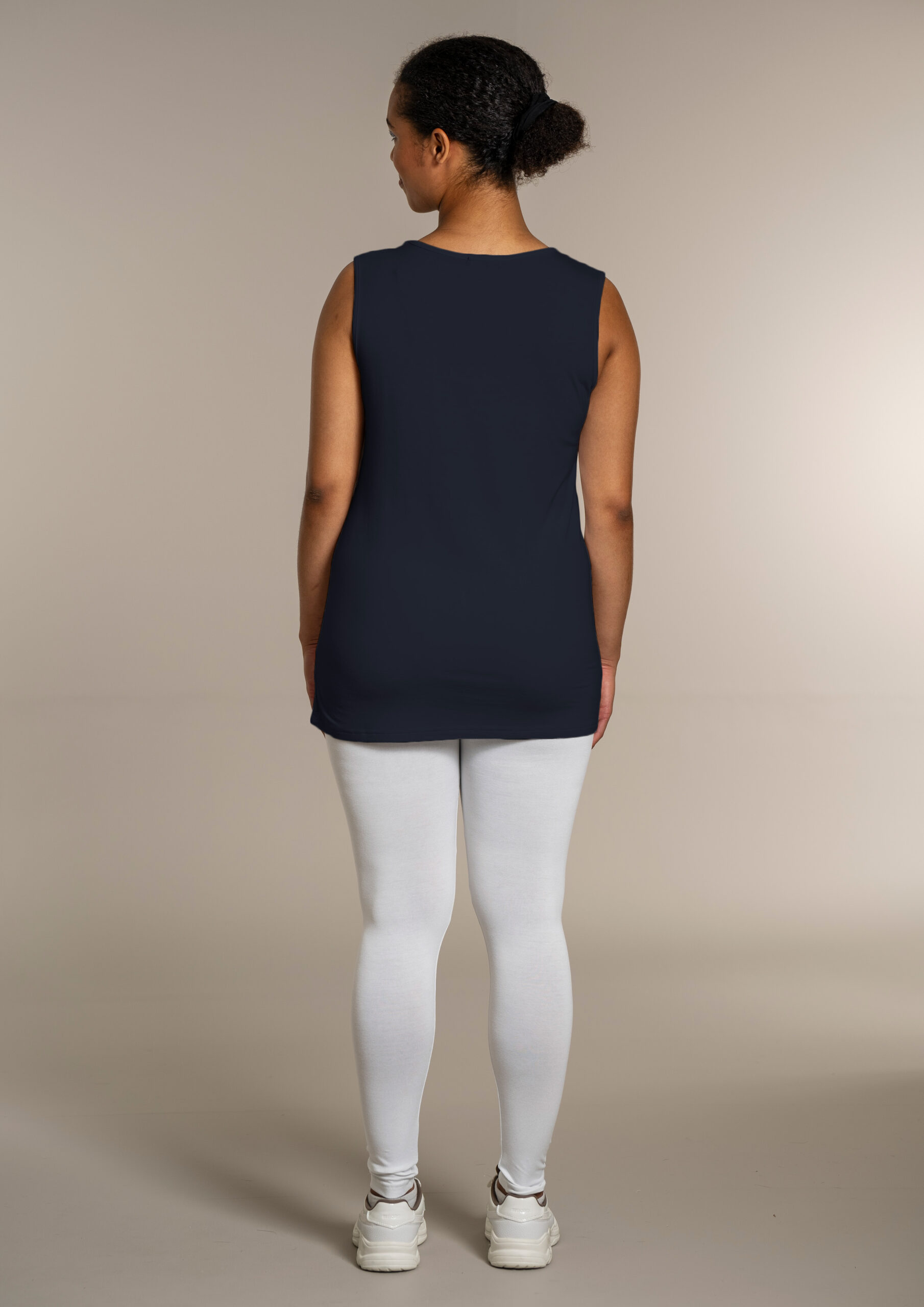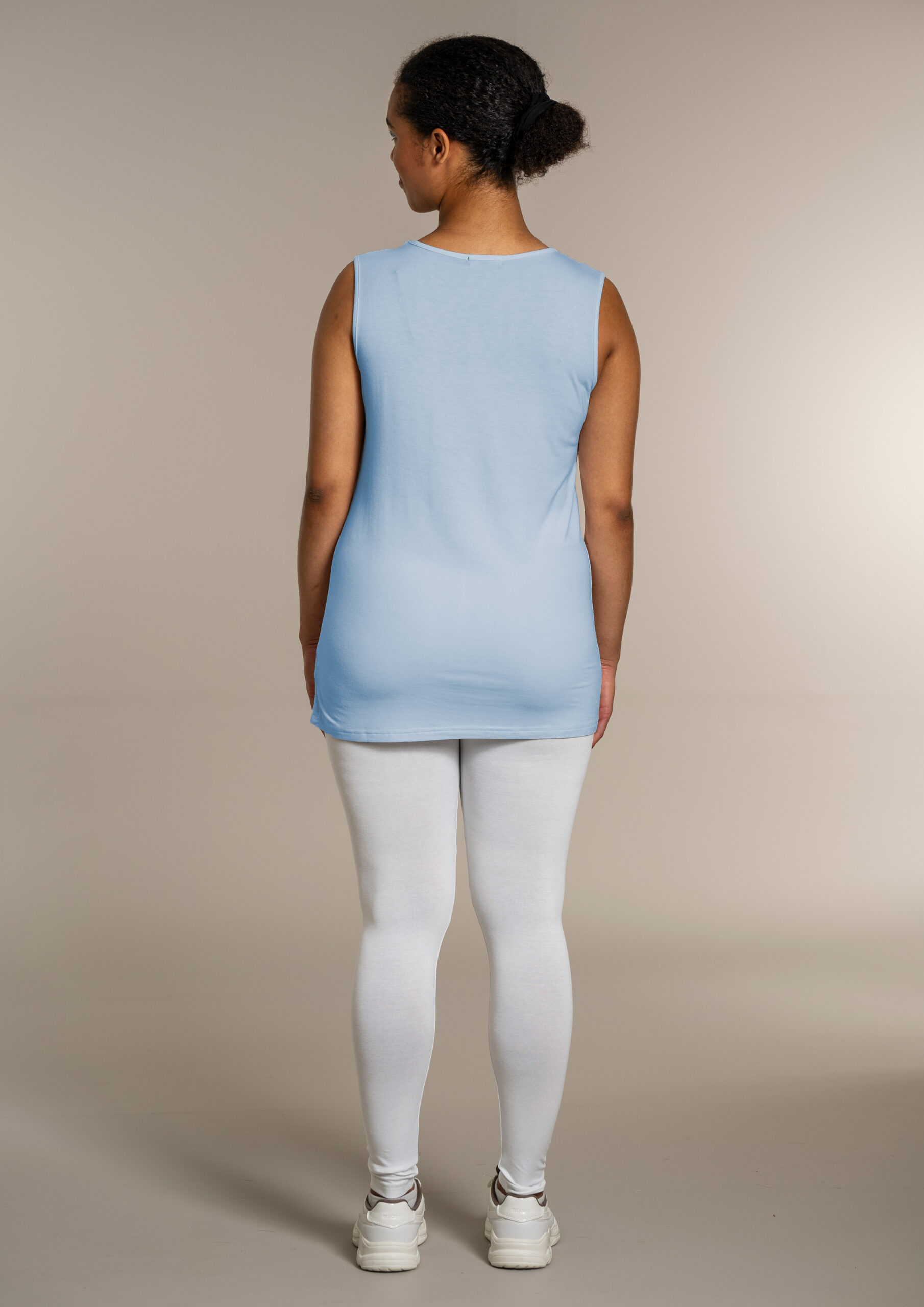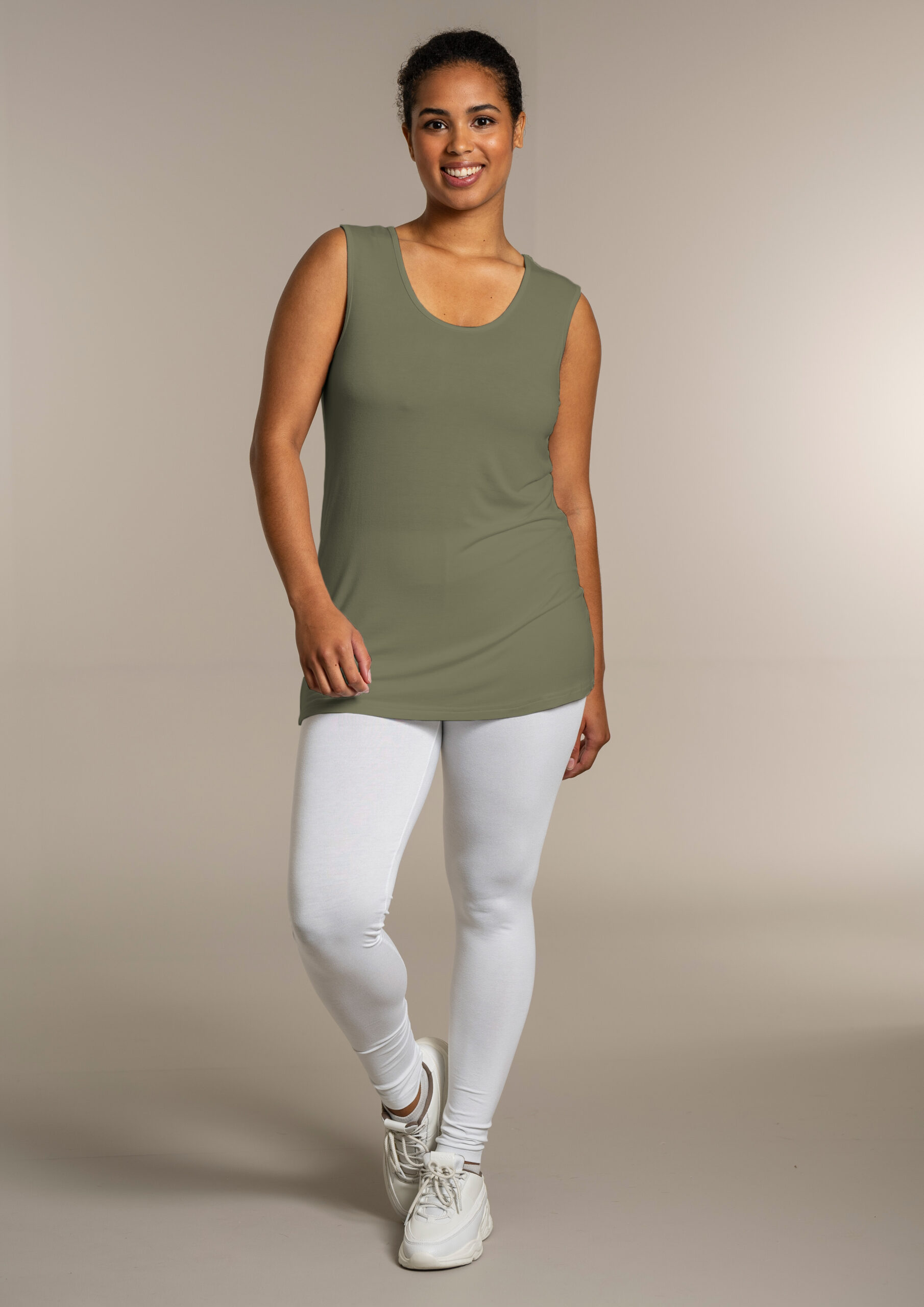 Fin ensfarvet top fra Sandgaard i en viskoseblanding, jerseykvalitet. Toppen har rund hals og brede stropper.