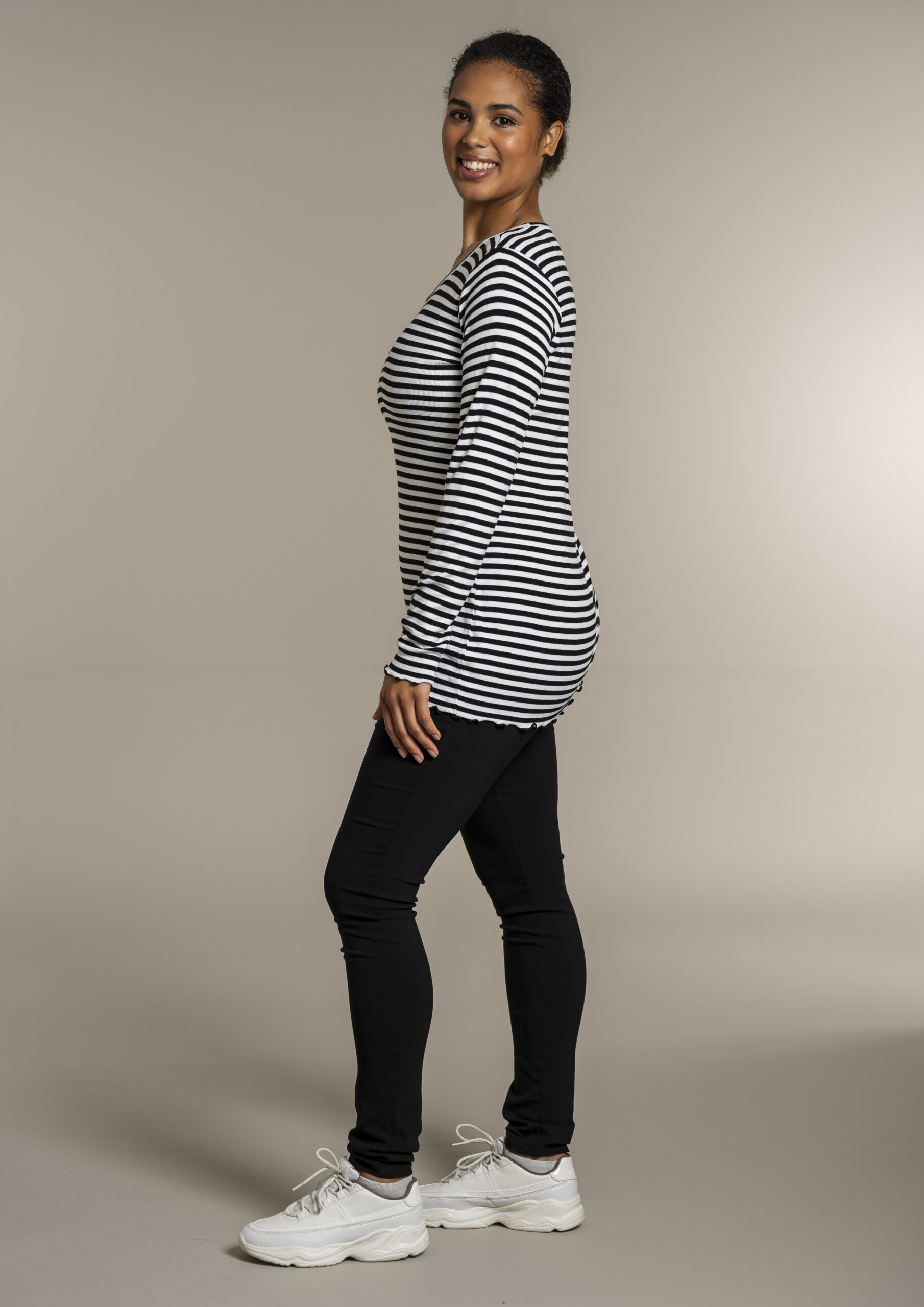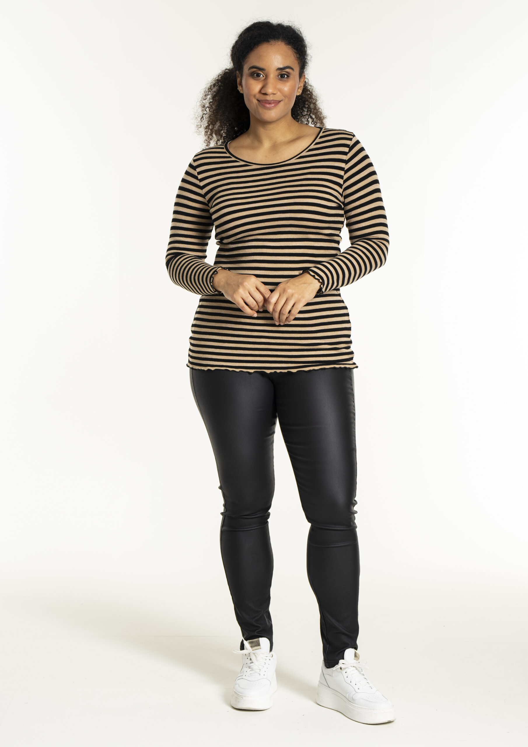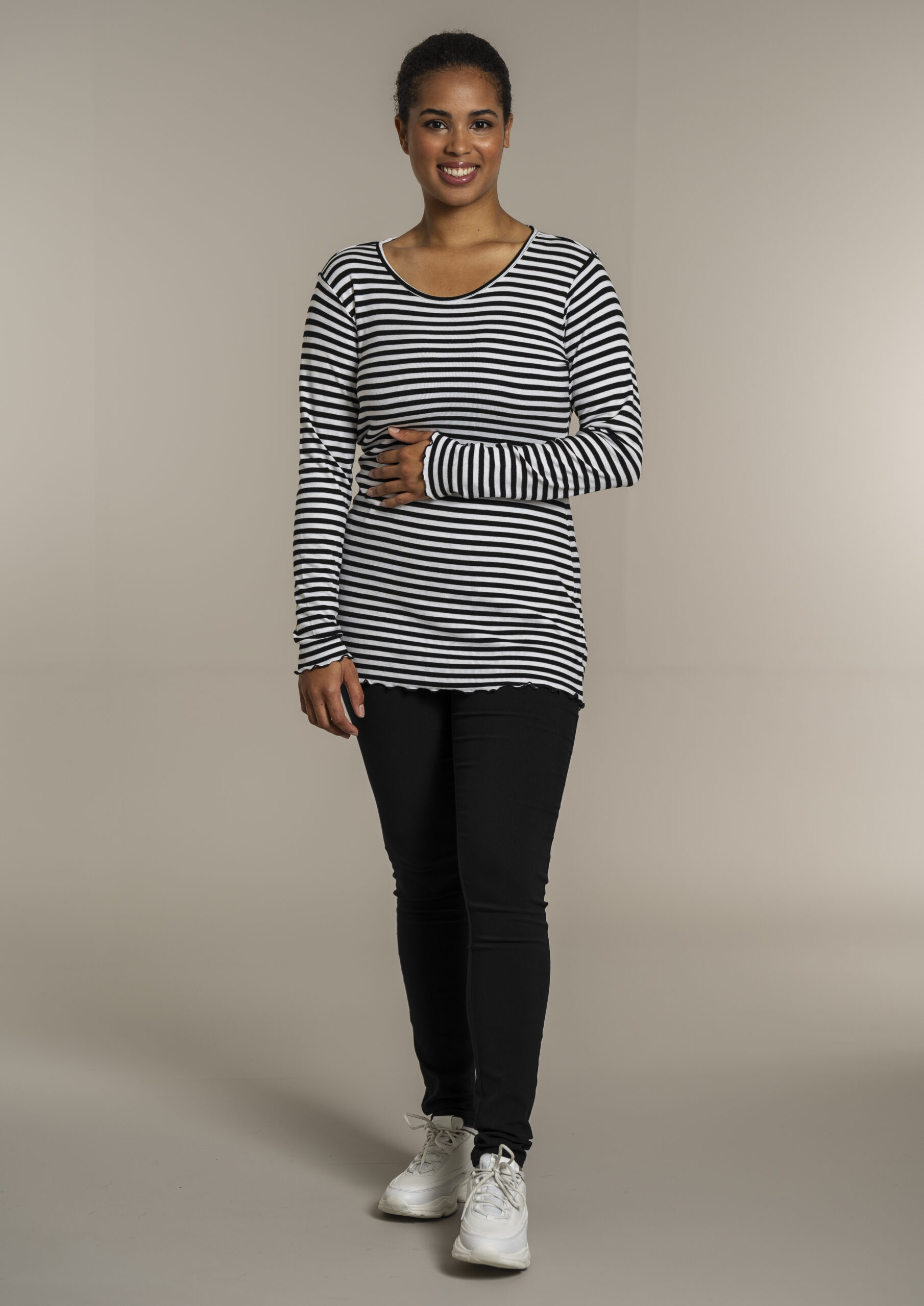 Lækker stribet rib T-shirt fra Sandgaard i lækker viskose. T-shirten har lange ærmer og rund hals, og er flot afsluttet på ærmer og krop med en dekorativ overlock kant.